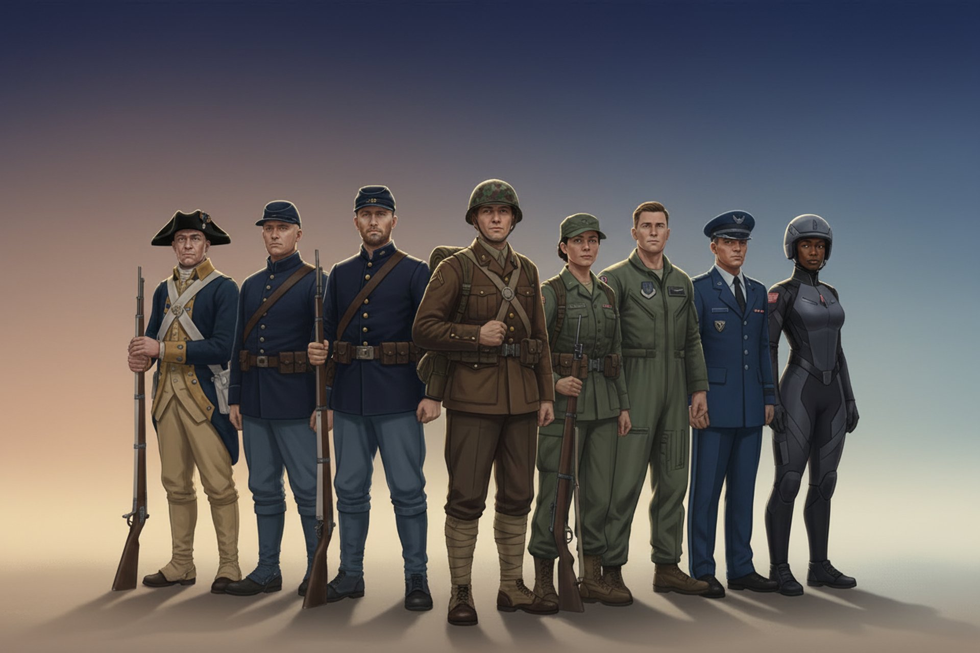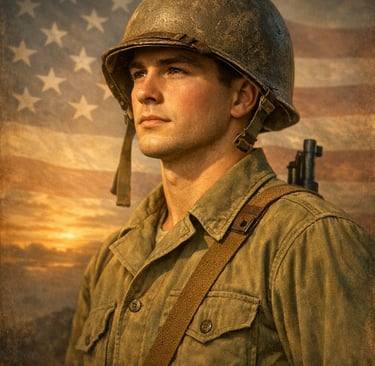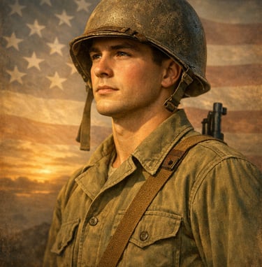 For 250 years, Americans have worn a uniform and stood a post—from the first shots of the Revolution to the dawn of Space Force. This honor guard across history represents every era, every branch, and every family that has carried the weight of our sovereignty. Below, you’ll find a growing gallery of veterans’ stories, followed by the one that shaped my own life and work: the Marine who came home from Iwo Jima, picked up a hammer, and started building American homes—my father, Samuel Eugene Burgess.